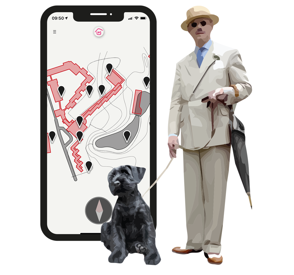 Über das Gelände spazieren und Gebäude entdecken – dies macht die Flanier-Meile möglich. Mittels einer digitalen Kompassnadel können Besucher:innen ihren aktuellen Standort per GPS abrufen und Nahegelegenes direkt in der App erkunden.